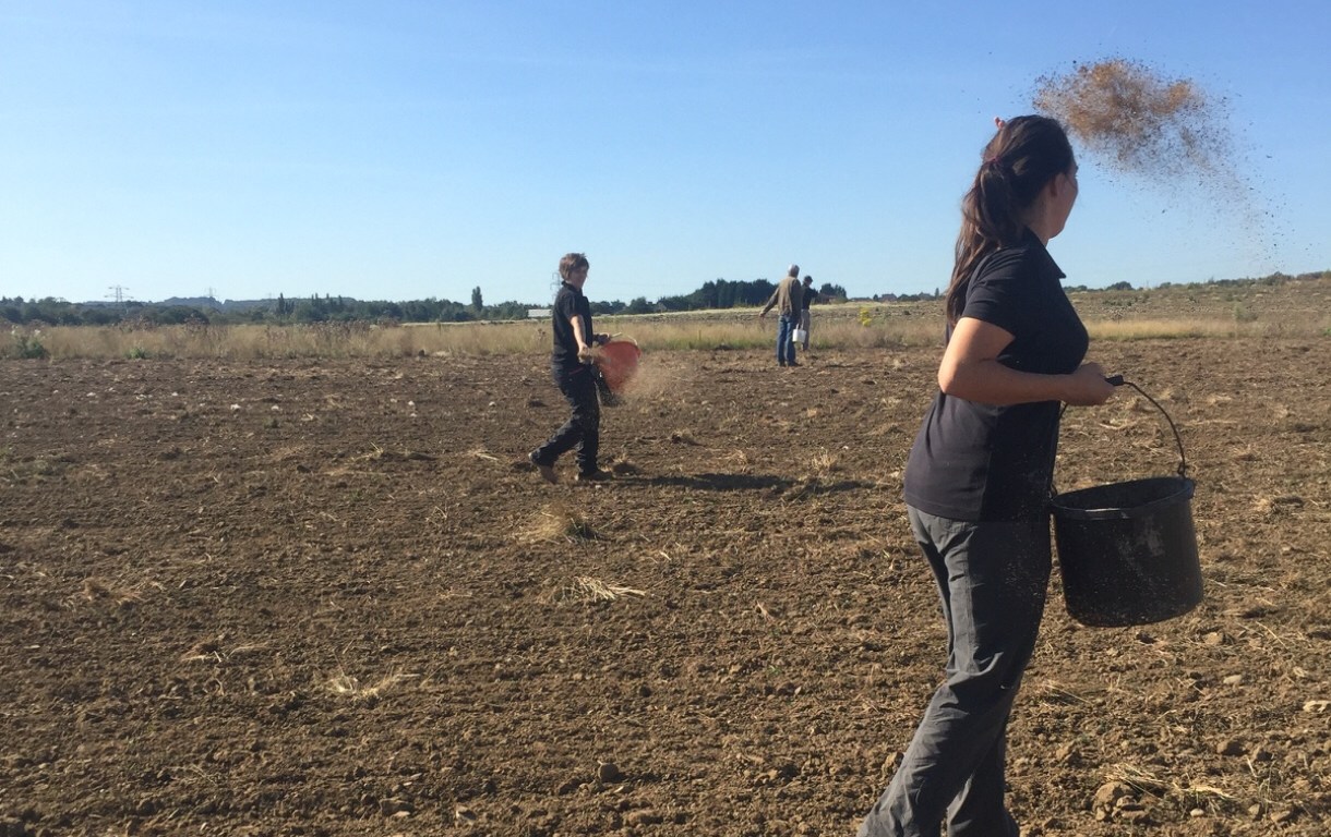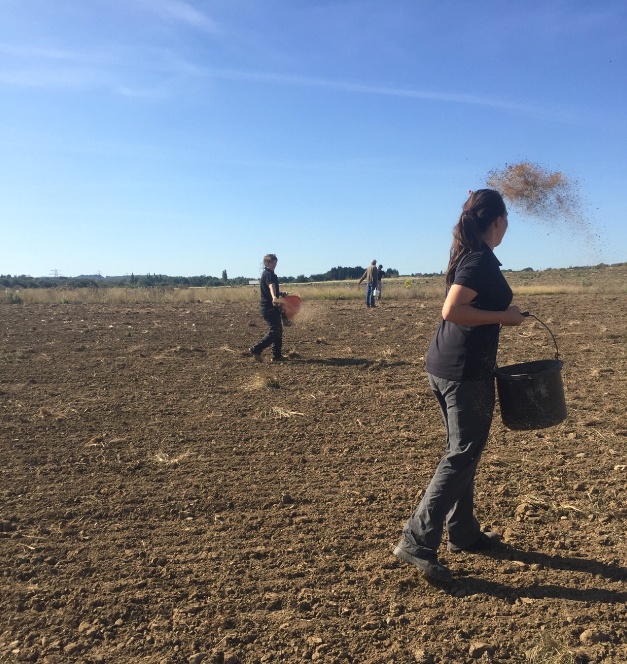 In September, we were delighted to have the help of Pete Wall and the Yorkshire Wildlife Trust volunteers in helping to seed the new grassland on The Fleet. After Jonathan (our farmer) had prepared the ground, they sowed it ‘old-style’ by hand after which it was rolled to firm in the seed.